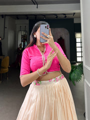 Rekha Tussar Silk Dark Pink Dhavani Set | Langa Davani Set | Shoppers Trend
